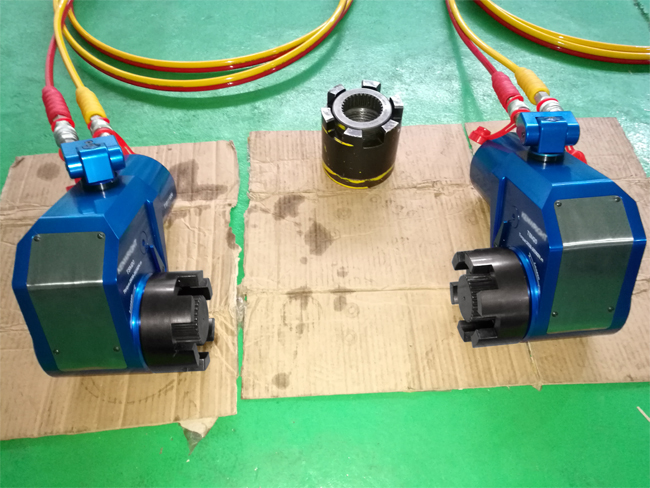 BOLTING公司成功的完成了與凱特克機(jī)械式拉伸螺母的配套工具(液壓扭矩拉伸機(jī)),該液壓扭矩拉伸機(jī)是用于發(fā)電站3-1/8螺母預(yù)緊工作。用戶所需預(yù)緊扭矩為18000N.m。
